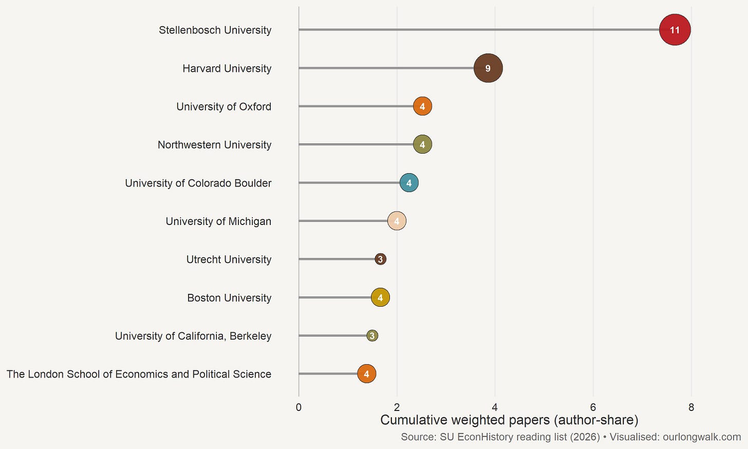I teach a graduate course in economic history. Each year, I update the reading list to include the latest, greatest research in the field of economic history, broadly defined. The criteria are simple: as this is a course for Honours (fourth year) and Master’s economics students, I focus on the papers I think best reflect the most interesting (read: best) economic history work by economists. I’ve previously published my reading list for the 2024 and 2025 academic years. Below is my 2026 list.